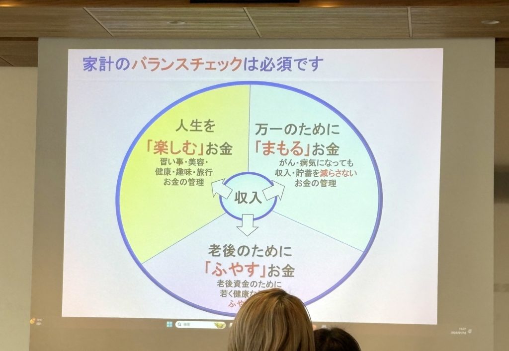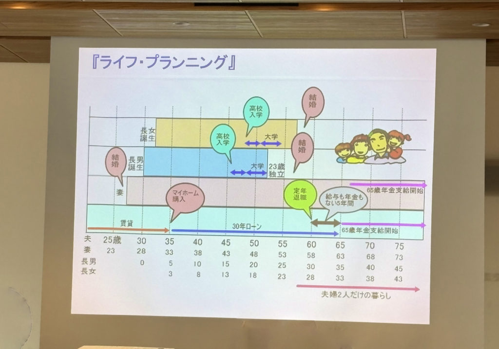 結婚・育児・老後のライフプランを健康で楽しく有意義に過ごすための資金作りの考え方をレクチャーしていただきました。